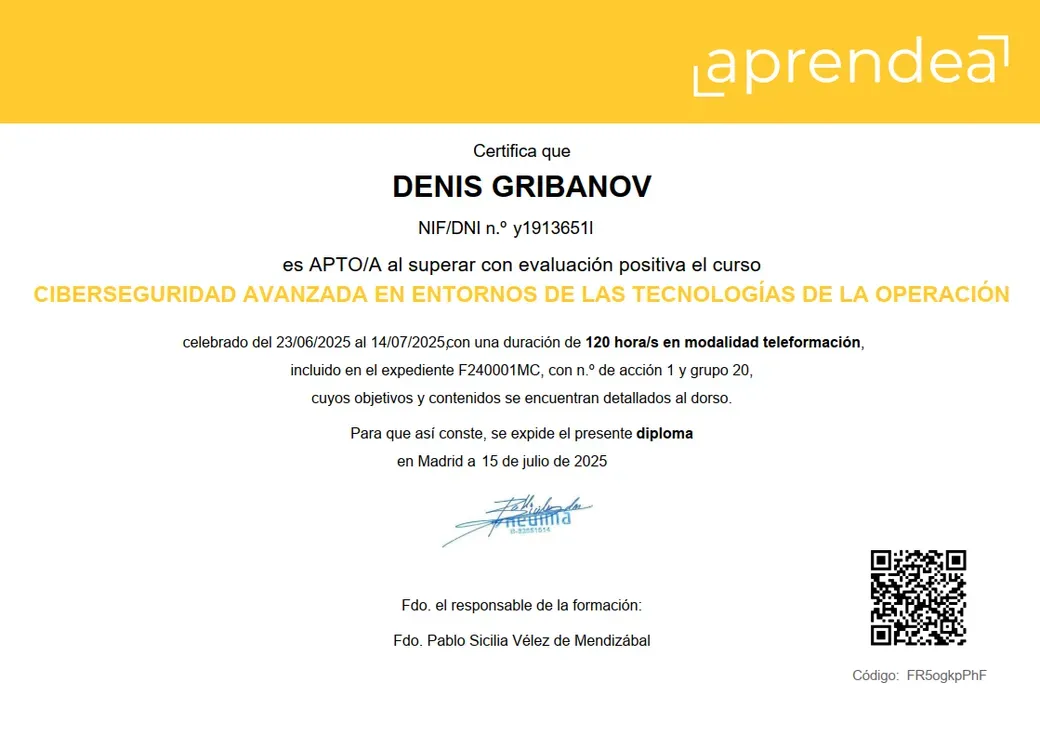 Ciberseguridad avanzada en entornos de las tecnologias de la operacion.